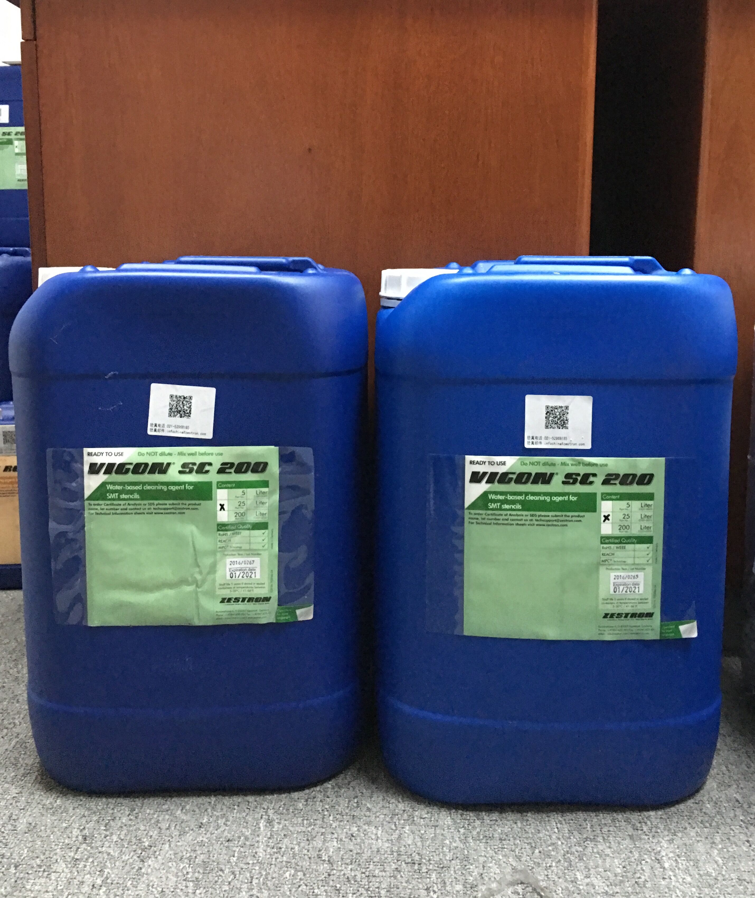 VIGON SC200是特別設計在室溫條件下清洗SMT網(wǎng)板的水基清洗劑?梢栽谕粋工藝中有效清除焊錫膏和SMT膠水,也可以被用在印刷機內的網(wǎng)板底部擦拭應用中這些都是基于德國ZESTRON公司專利的MPC技術(微相清洗技術)。